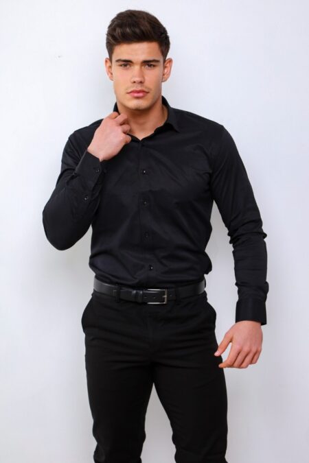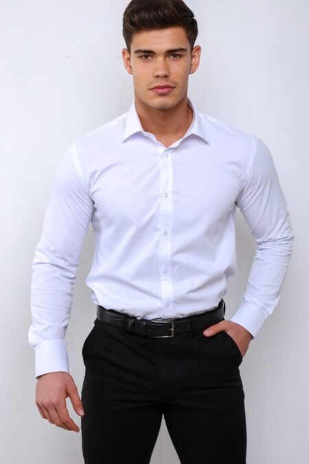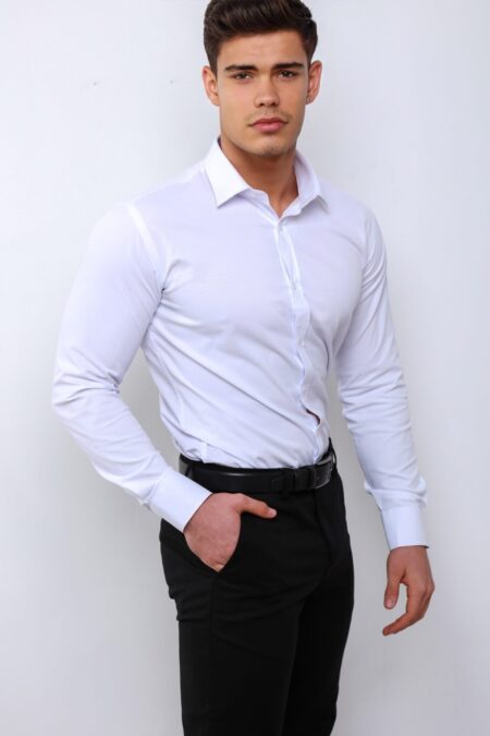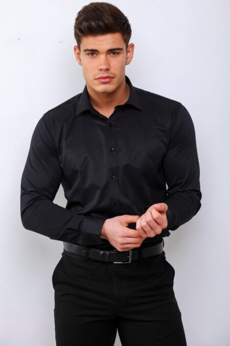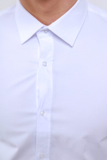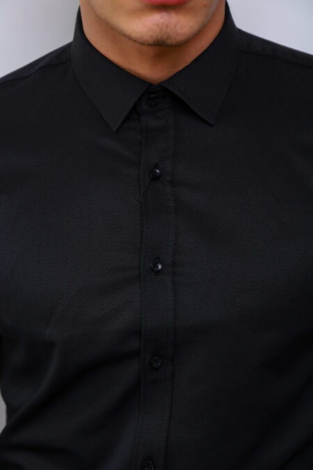 Slim-fit fazonú férfi ing, szövött, anyagában mintás kevert szálas anyagból, elegáns megjelenéssel.
