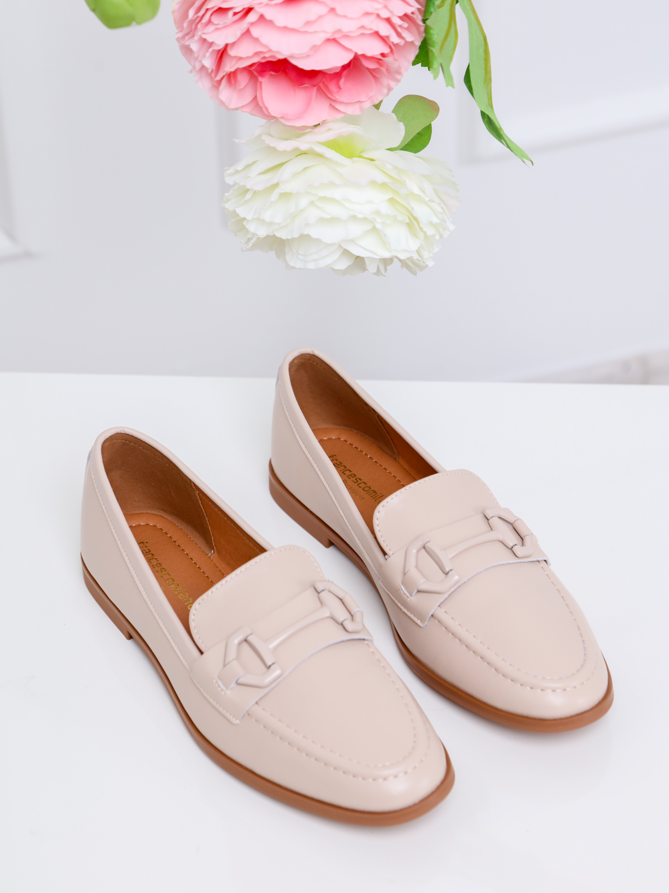 - A Francesco Milano bézs női bebújós cipő a márka elegáns átmeneti darabja.