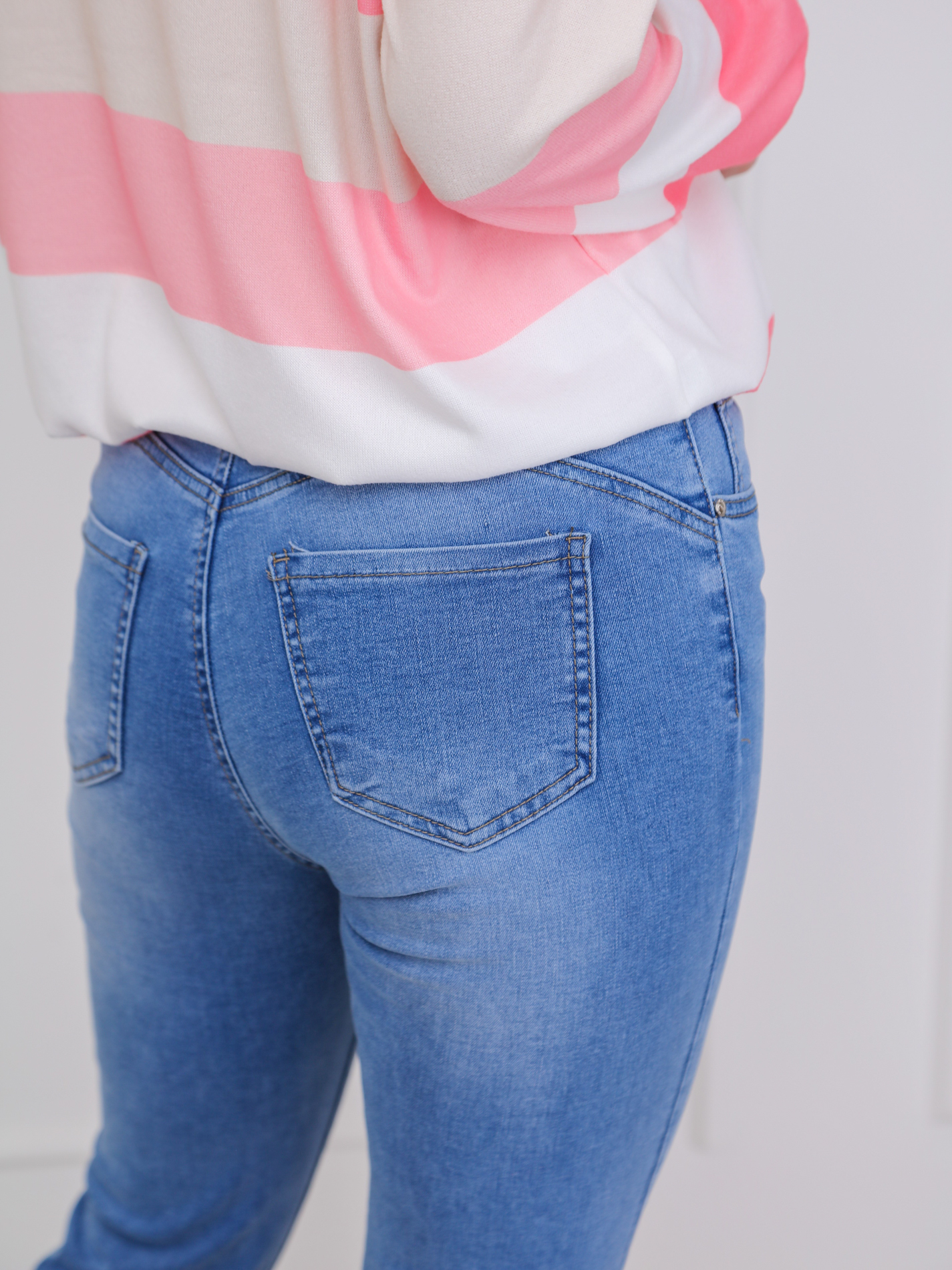CLARA popsikerekítős elasztikus tavaszi női farmernadrág
