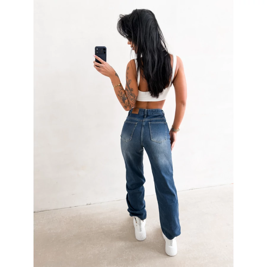 Anyag: 44% pamut, 30% viszkóz, 26% poliészter – a viszkóz tartalomnak köszönhetően az anyag puhább és kényelmesebb a hagyományos farmernél.