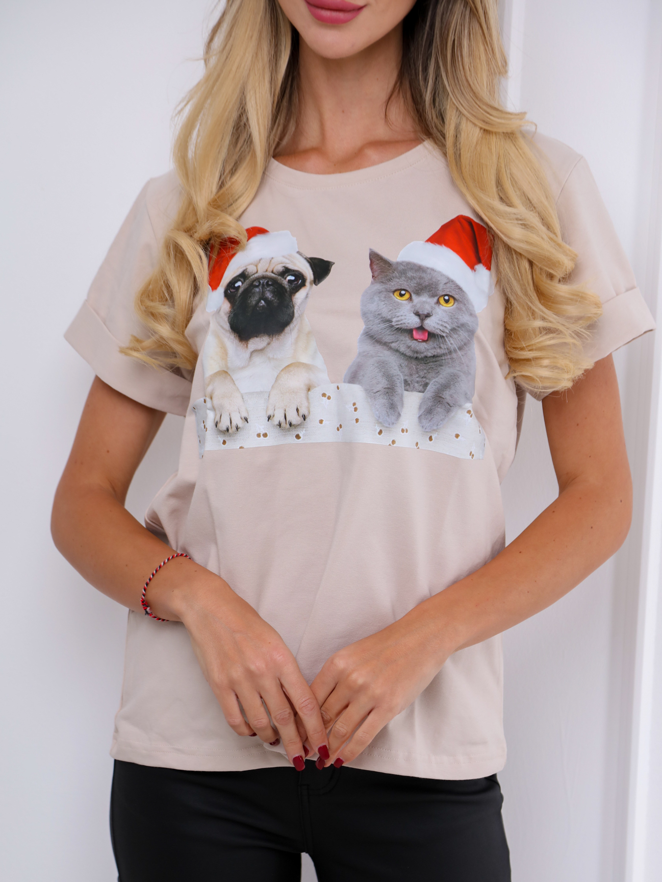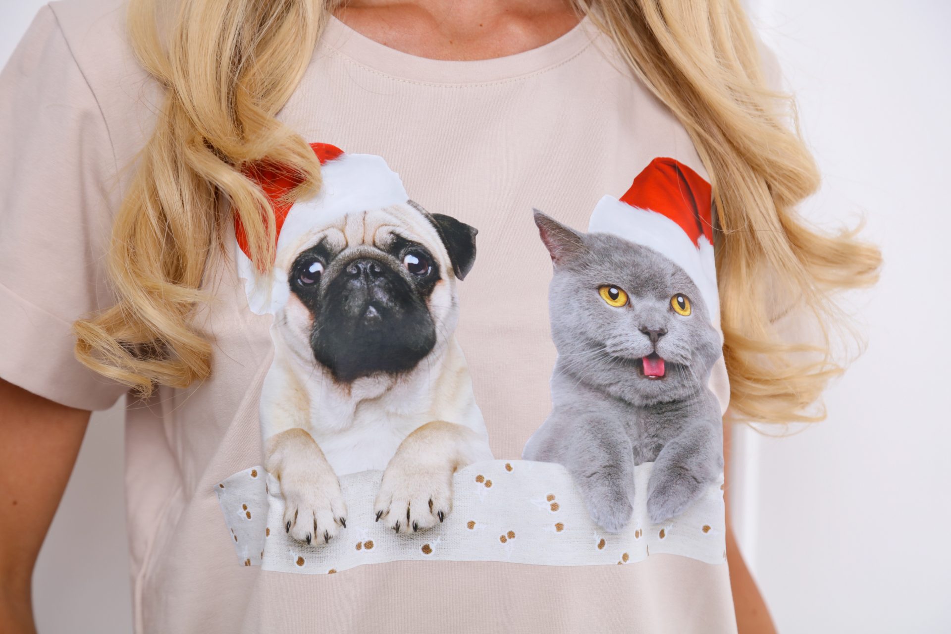 JODIE mopszos cicás karácsonyi női póló