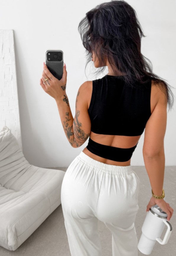 - Testhezálló, rövidebb fazonú felső rugalmas kötött anyagból.